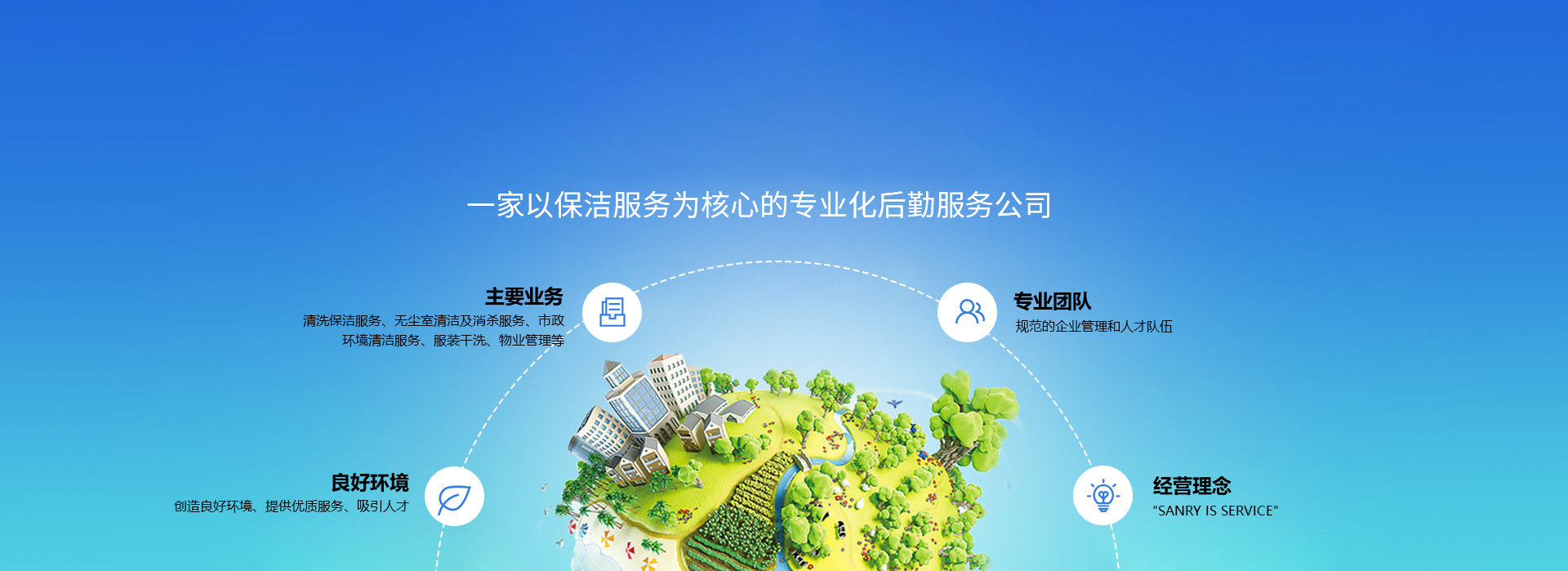 清洗保潔服務(wù)、無塵室清潔及消殺服務(wù)、市政環(huán)境清潔服務(wù)、服裝干洗、物業(yè)管理、空調(diào)清洗及維保、電子電器設(shè)備清潔維保、高空清潔作業(yè)、油煙管道鍋爐清潔疏通維護(hù)、高層水箱清洗;綠化工程機(jī)養(yǎng)護(hù);銷售:清潔用品、清潔設(shè)備、日用百貨。我們的經(jīng)營理念:“SANRY IS SERVICE”,本著這一理念公司自成立起...